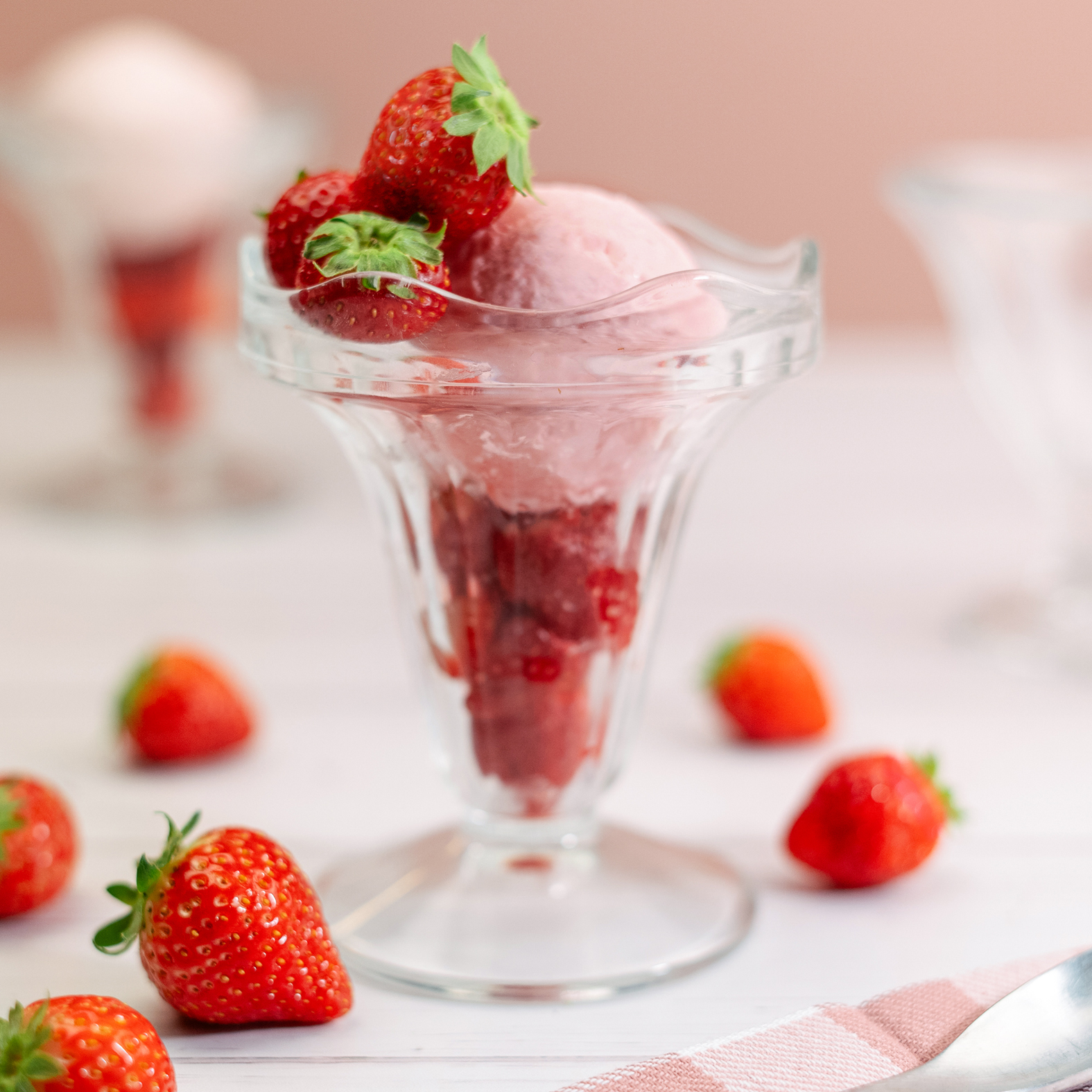 Ambachtelijk ijs bereid door onze patissiers met verse aardbeien en uitsluitend hoogwaardige ingrediënten. Vol van pure fruitsmaak - zonder kunstmatige toevoegingen en van nature lactosevrij.