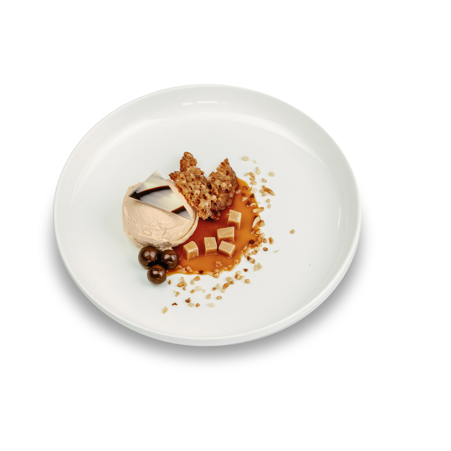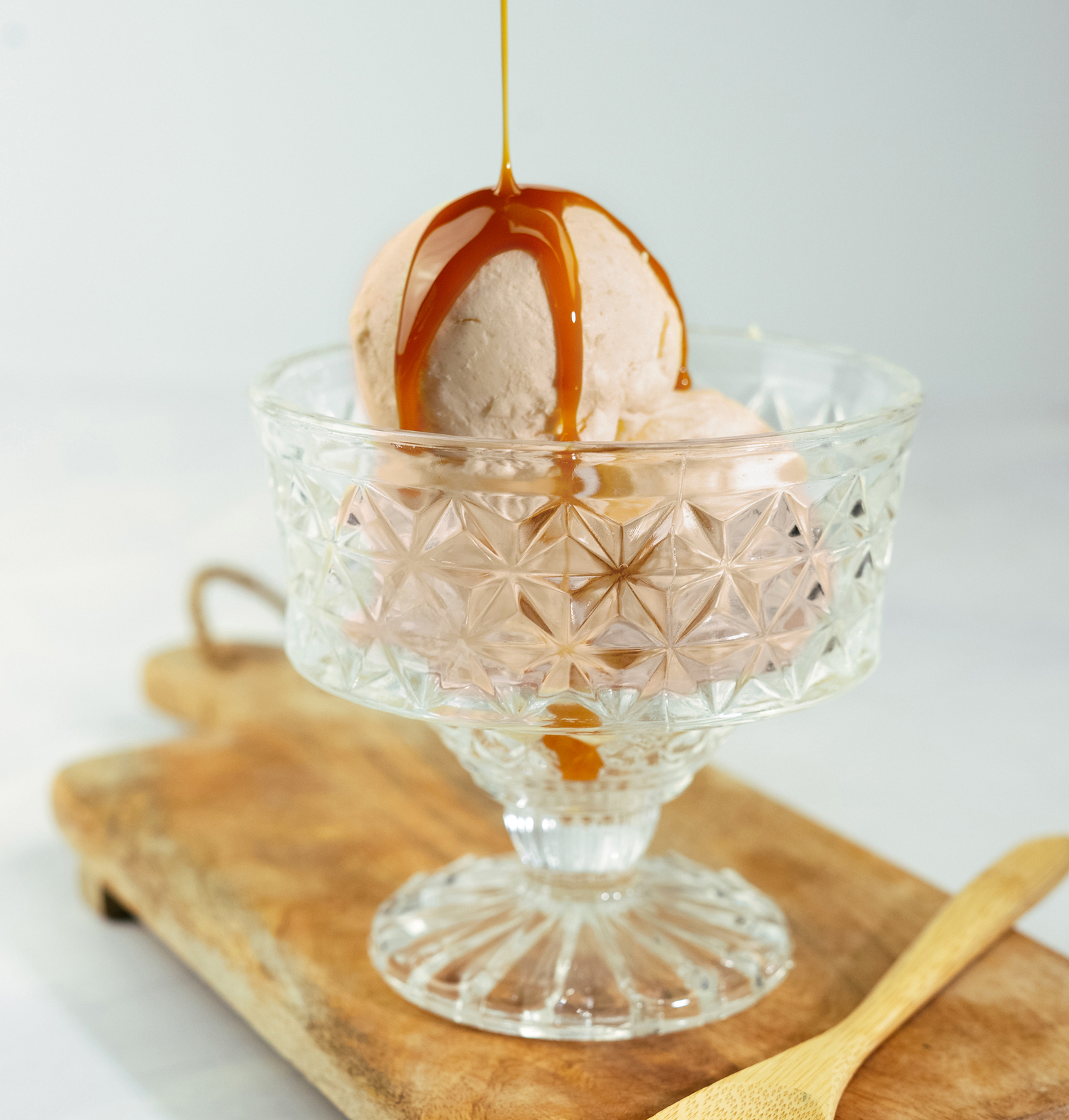 Ambachtelijk ijs bereid door onze patissiers verrijkt met zelfgemaakte gezouten karamel en hoogwaardige ingrediënten. Van nature lactosevrij en bereid voor de perfecte zoet-zout balans.