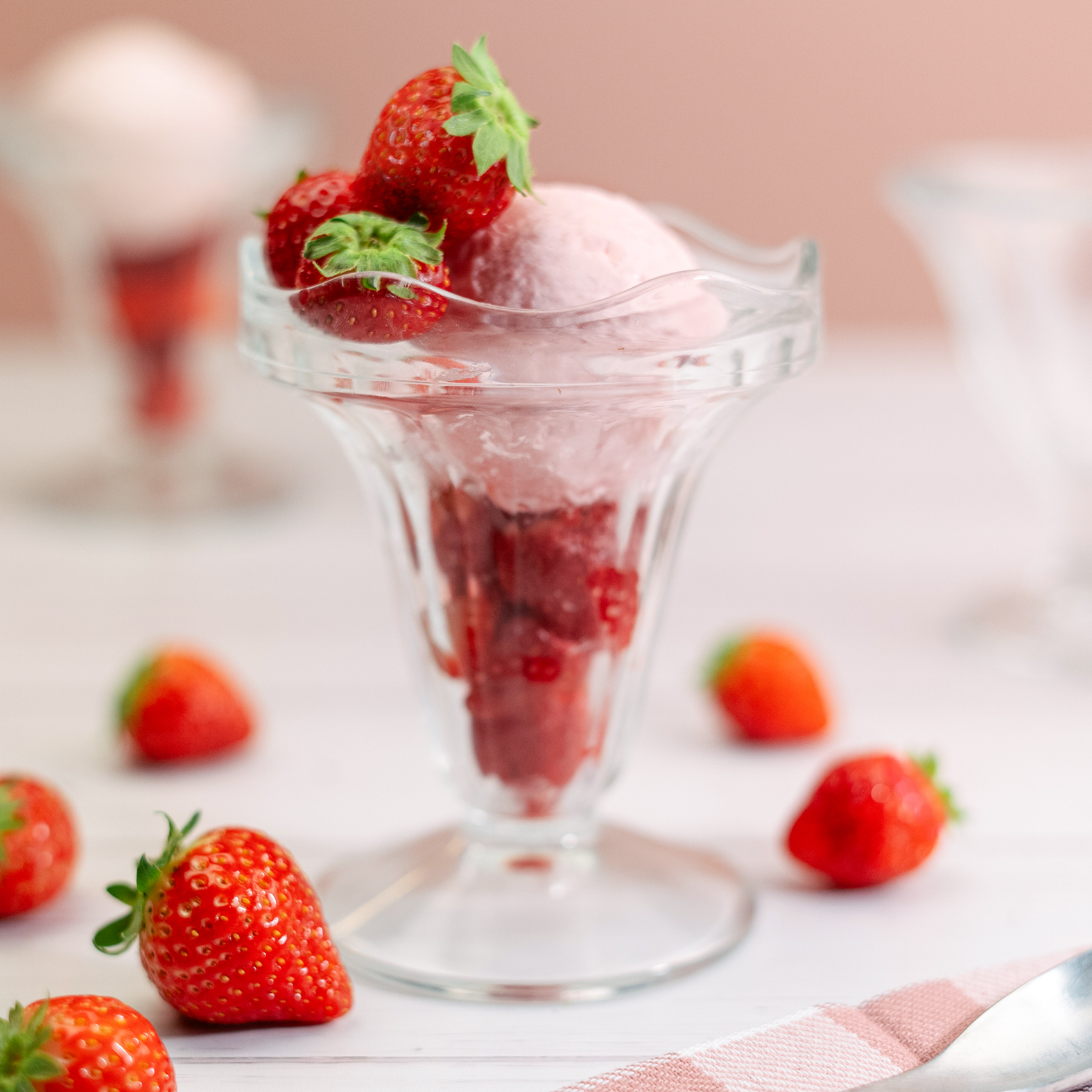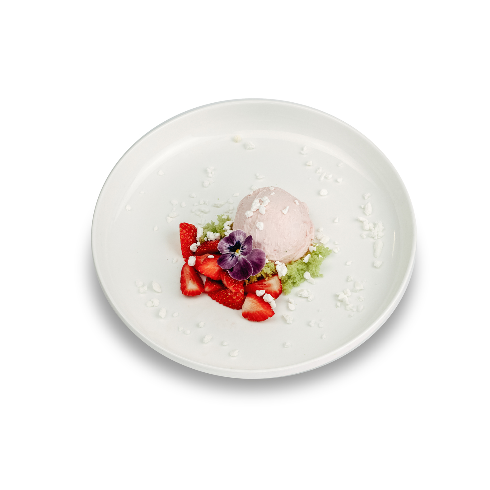 Ambachtelijk ijs bereid door onze patissiers met verse aardbeien en uitsluitend hoogwaardige ingrediënten. Vol van pure fruitsmaak - zonder kunstmatige toevoegingen en van nature lactosevrij.