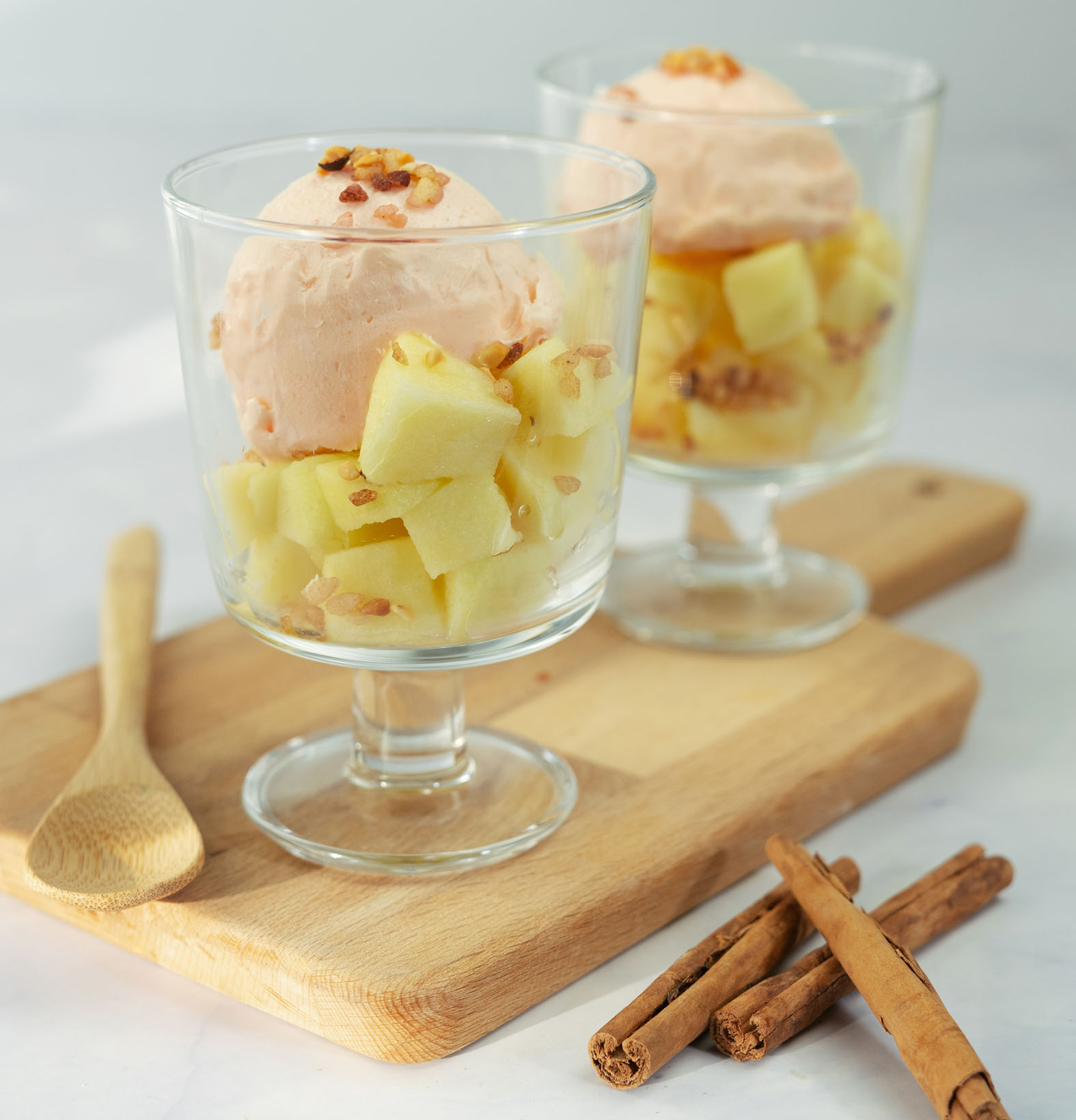 Ambachtelijk ijs bereid door onze patissiers met meegetrokken kaneelstokken en uitsluitend hoogwaardige ingrediënten. Vol en warm van smaak en van nature lactosevrij.
