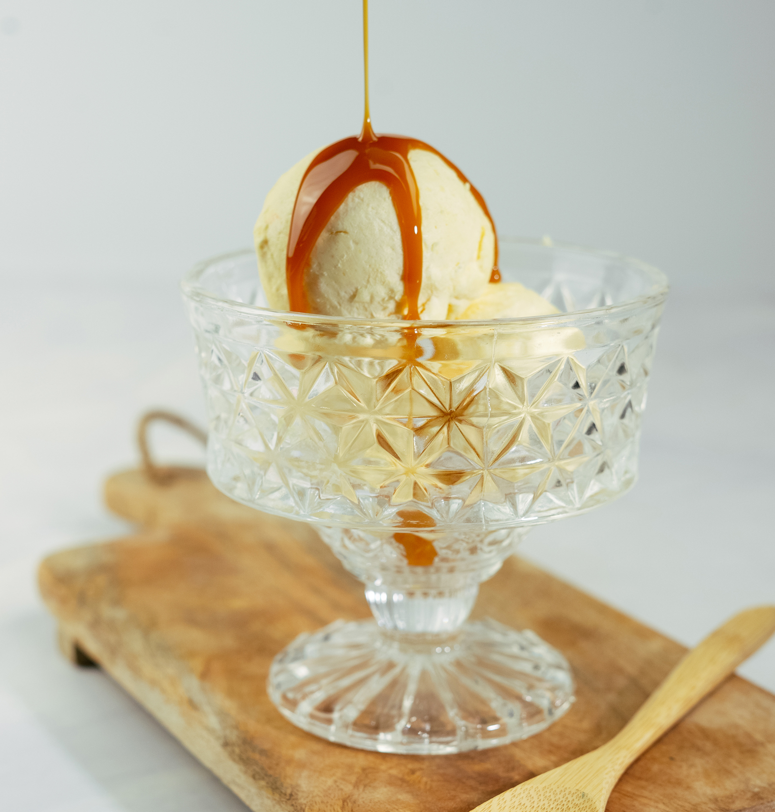 Ambachtelijk ijs bereid door onze patissiers verrijkt met zelfgemaakte gezouten karamel en hoogwaardige ingrediënten. Van nature lactosevrij en bereid voor de perfecte zoet-zout balans.